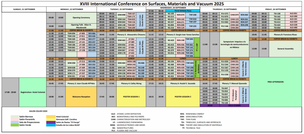 We are pleased to invite you to participate in the “XVIII International Conference on Surfaces, Materials and Vacuum (XVIII-ICSMV)”, organized by the “Sociedad Mexicana de Ciencia y Tecnología de Superficies y Materiales (SMCTSM)”. The conference will take place in Puebla, “Edificio Carolino“, Mexico, from September 22 to 26, 2025.